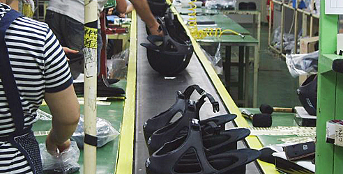 For example, making a FRP shell by various sheets of composites like fiberglass, carbon-fiber, and kevlar is manufacturing. Taking the FRP shell and assembling with other finished goods like liners, eps, and other various parts to produce a helmet is production.